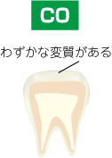 とくに「CO」では、これが本当にむし歯かどうか悩むくらい見た目にはわからず、しばらく様子を見て、むし歯になるか観察する必要があります。ちなみにこれは「CO(シーオー)」と呼びます。この「O(オー)」は「Observation(オブザベーション)」、つまり「要観察」と言う意味です。